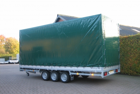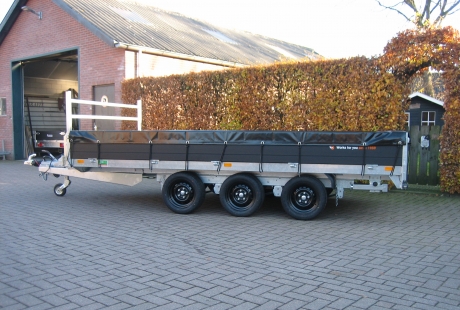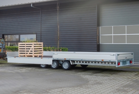 Plateauwagens zijn in geremde uitvoering te leveren in enkel- en tandemassige en tridemassige versie. Chassis: volbad verzinkt.